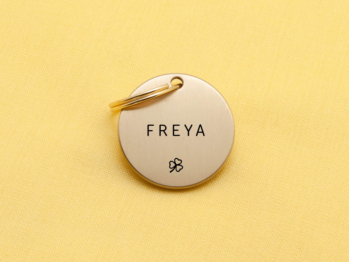 - Side 1 - Your pet's name (this will be engraved in uppercase. No other information can go on the front.)